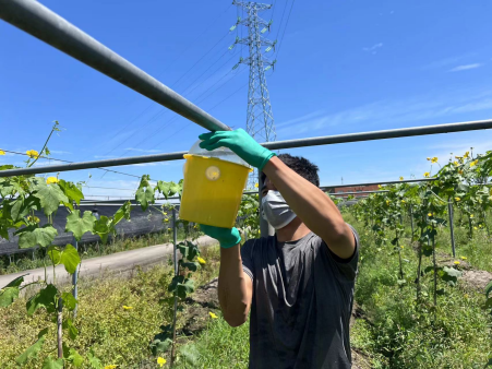 面对导致烂瓜的南亚果实蝇,农户们束手无策,只好任由劳动成果被白白糟蹋。而Beat365“蝇下留瓜”大学生暑期社会实践团成员,则针对这一问题分工合作,分区检测果实蝇密度,重点排查病害高发区域。他们在老师指导下制定解决方案,自主配置生物制剂、制作诱捕器装置。最终,他们为百亩丝瓜构建了防虫防病双防线,一解农户的“心头愁”。