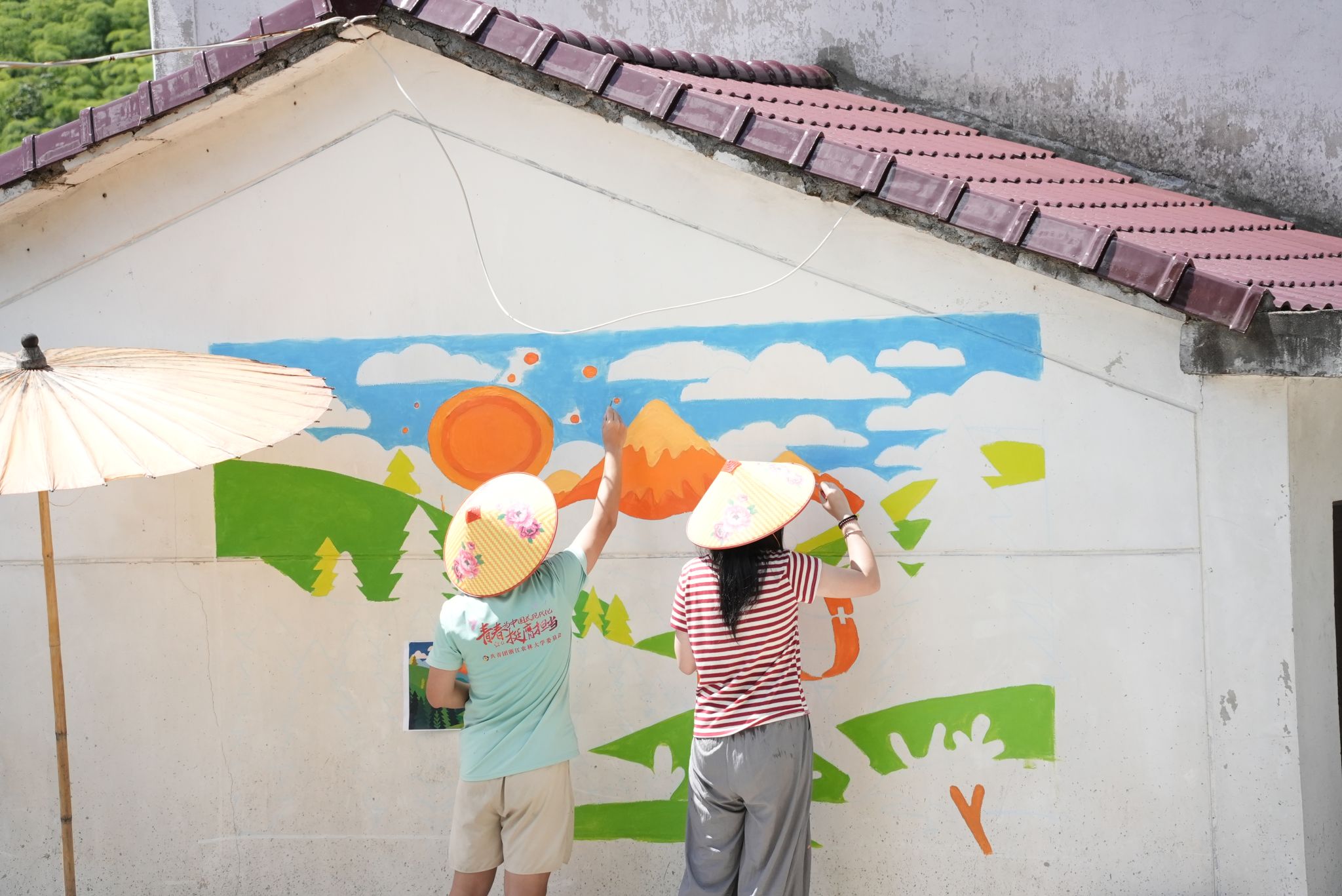 “青羽衔新”暑期社会实践团深挖竹茶文化基因,原创IP“竹宝”破土而出。他们不仅设计墙绘,将旧房改造成打卡点,更用专业本事给土地添彩,把设计的巧思撒在乡村的角角落落。师生们的努力,让游客来了就能身临其境地感受乡村的风土民俗、自然风光与泥土的芬芳。