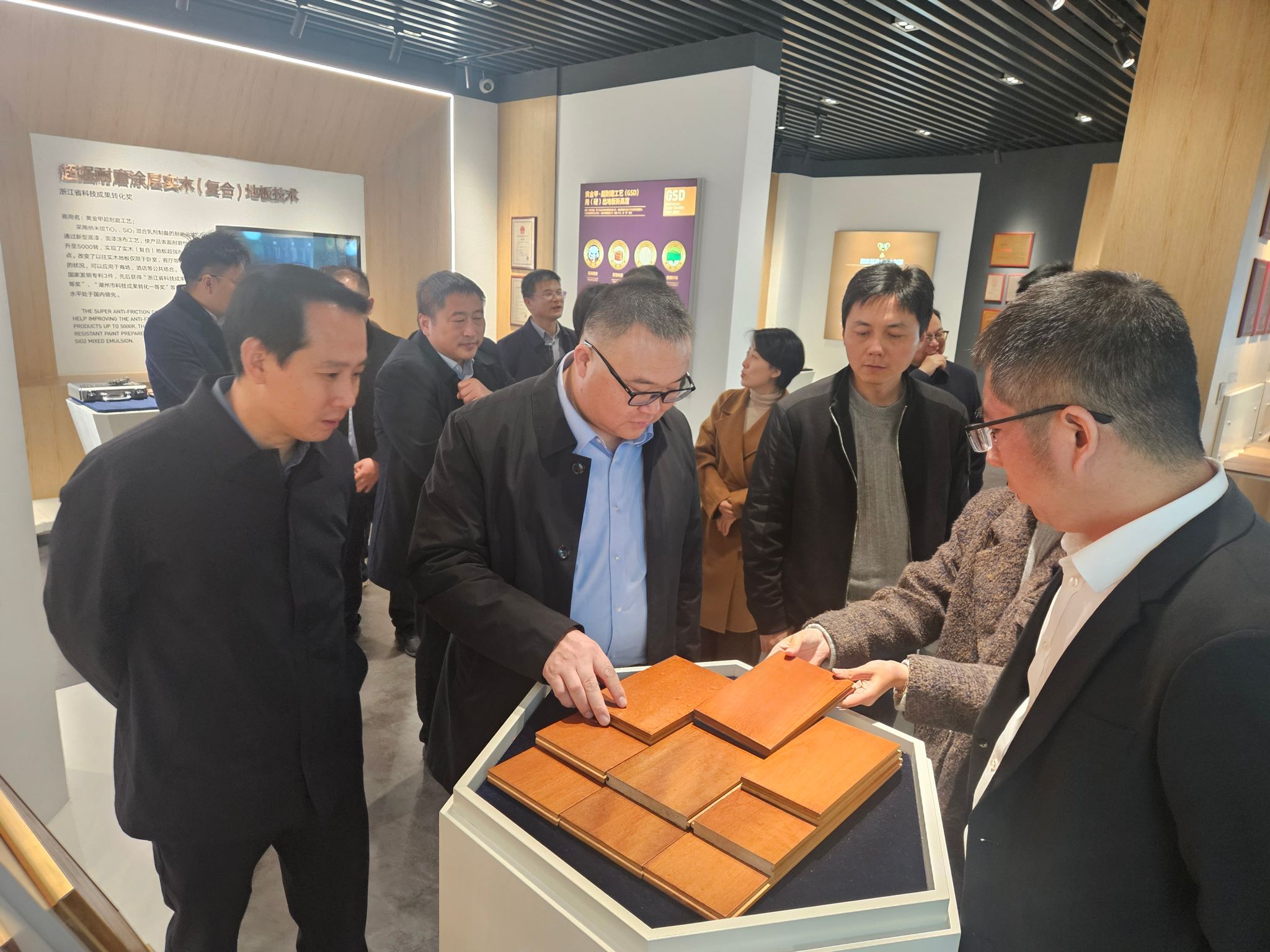 会前,朱斌一行前往南浔区相关企业进行实地调研。在练市镇红美人种植基地,调研了柑橘园展示中心、分拣中心、种植大棚及创客中心等,详细了解基地在红美人柑橘种植、现代农业产业发展、农文旅融合及共同富裕建设等方面的情况;在久盛地板有限公司,深入企业业态馆、省级企业研究院等全面了解企业在生产经营、产品研发、科技创新等领域的发展成果,就林业产业转型升级、绿色技术研发等与企业负责人深入交流。