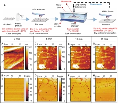 本研究解析了典型水环境条件下塑料表面自发形成微气泡过程,并揭示其诱导界面侵蚀驱动微塑料与纳塑料释放机制,为准确评估饮用水及天然水体中微/纳塑料污染的形成过程与控制措施提供了理论支撑。