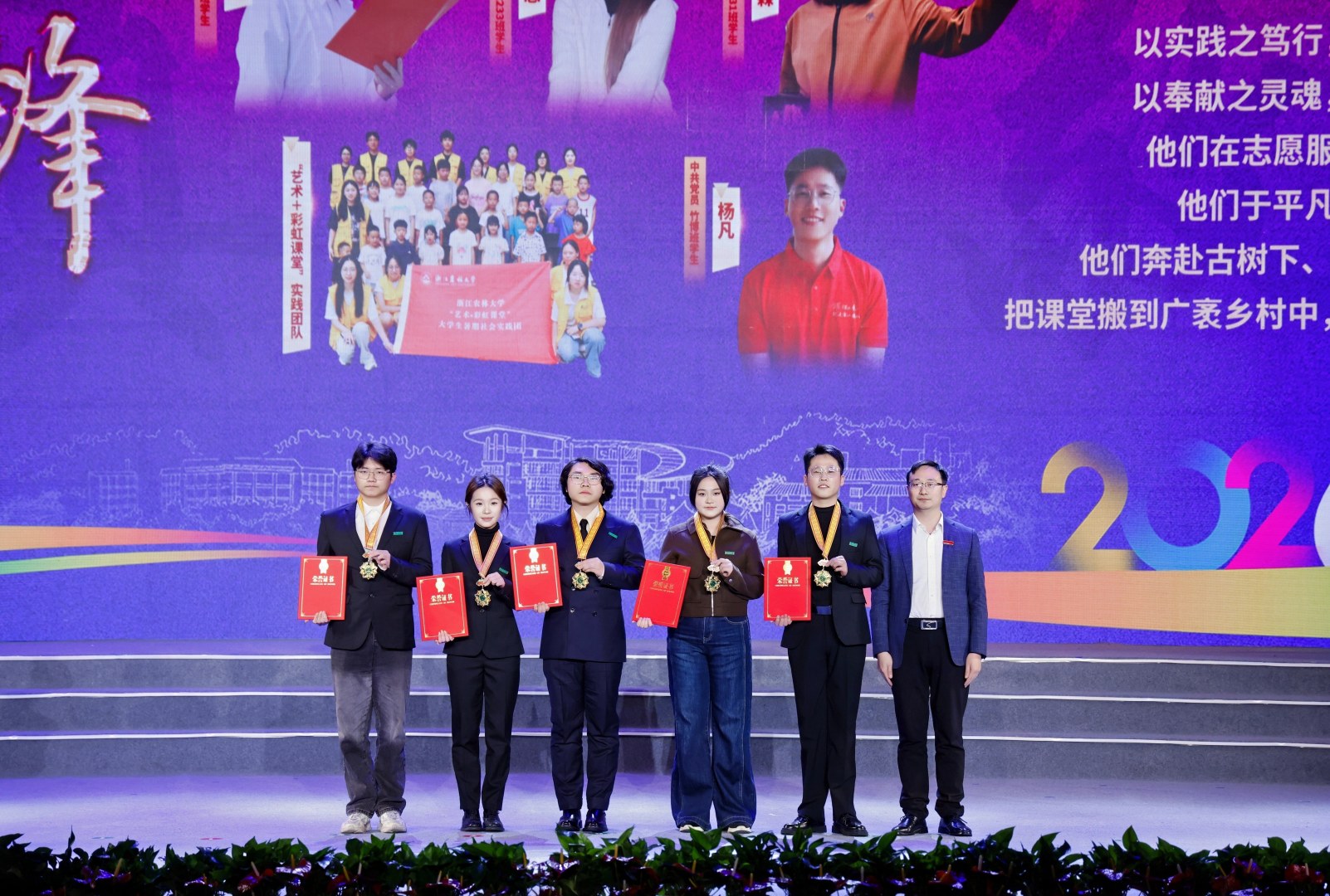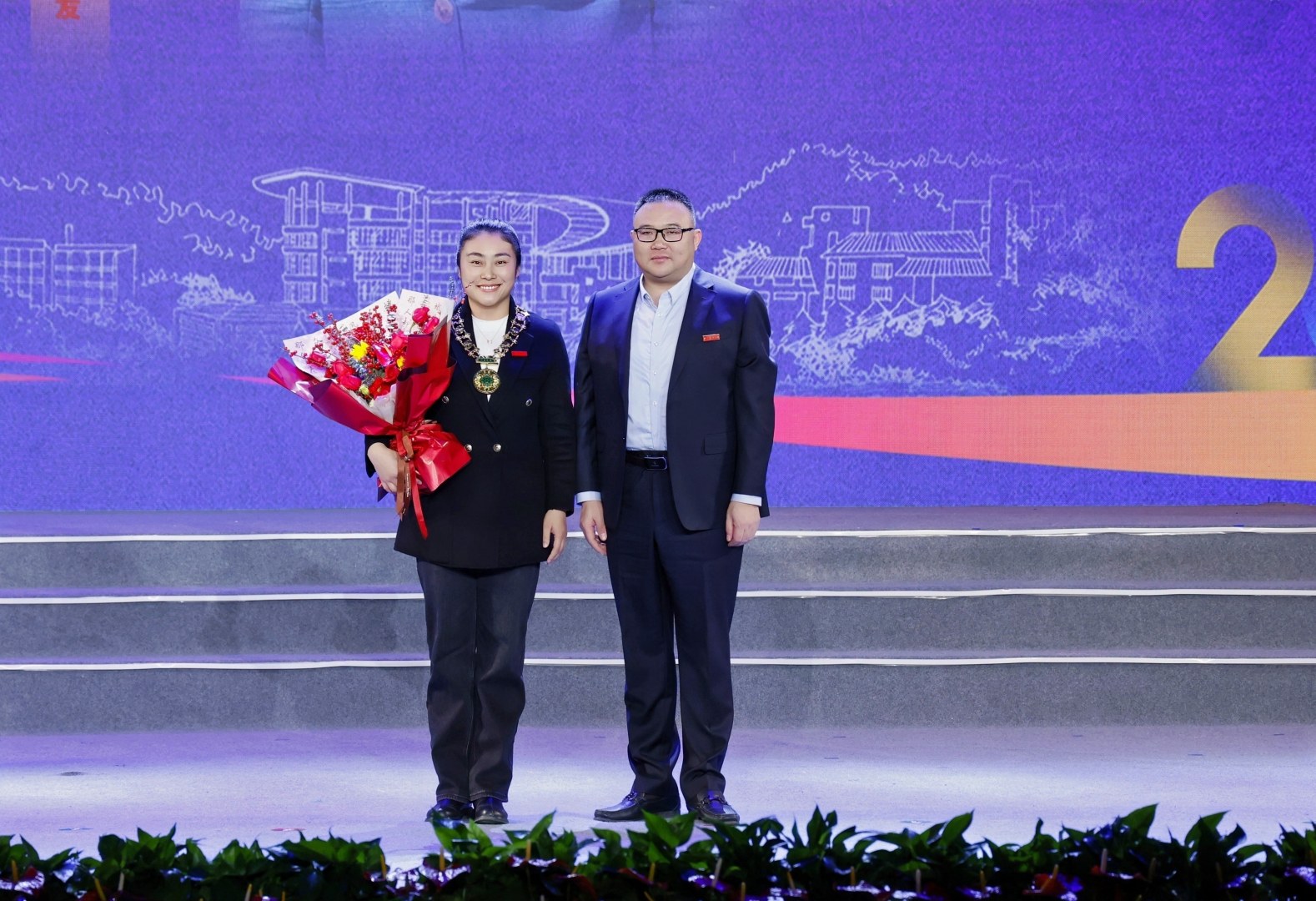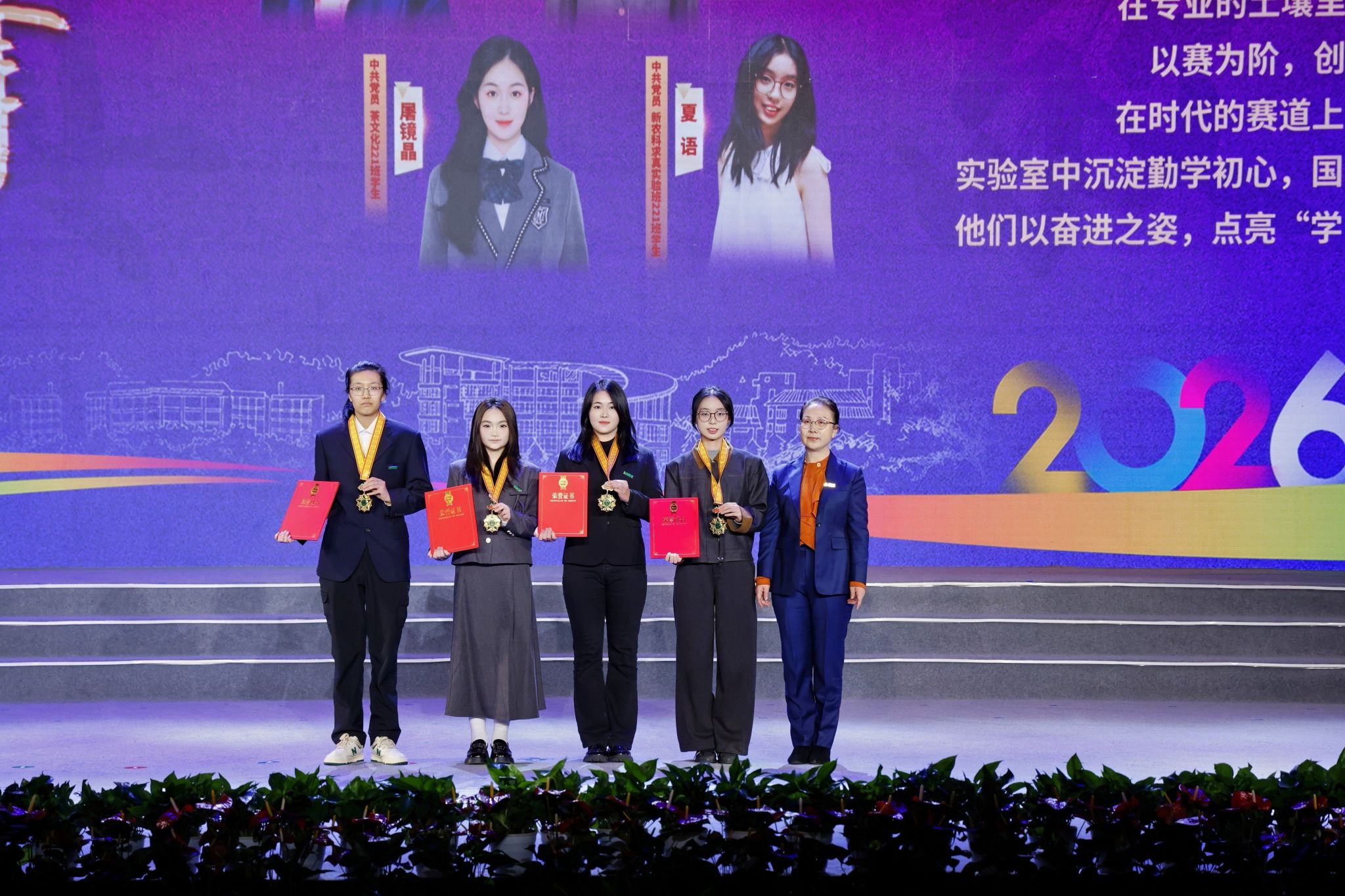 会上,根据新修订的《Beat365中文官方网站荣誉管理条例》,学校对2025年最高荣誉“求真敬业奖”获得者进行了表彰和采访,并授予“银杏勋章”;对“红绿先锋”“桃李模范”“荣誉校友”等荣誉称号获得者和集体进行表彰,并授予“枫香勋章”。