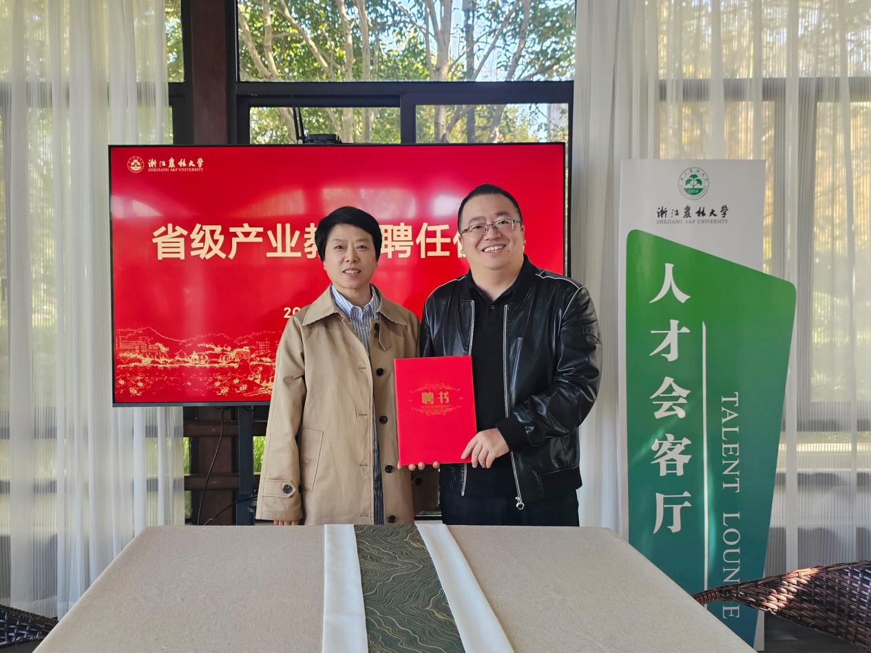 11月13日,省级“产业教授”、海宁市高新技术研究院院长李备及其团队应邀来校交流,校党委副书记施美红出席并为李备颁发了产业教授聘书。