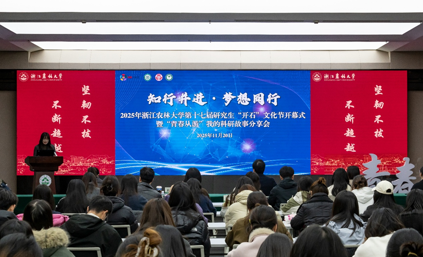 倪建均为文化节致开幕辞,指出十七年来持续开展的研究生开石文化节已成为学校研究生学术成长与文化浸润的重要平台,强调“开石”精神始终激励着研究生扎根现实、追求真理;希望全体研究生以“开山”的勇气勇攀学术高峰,以“琢玉”的恒心锤炼实践能力,以“成器”的追求实现全面发展;勉励同学们将个人理想融入国家战略,成为有理想、敢担当、能吃苦、肯奋斗的新时代农林人。随后倪建均为“青春从游”主讲嘉宾颁发纪念证书。