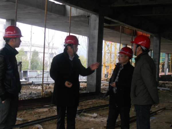 在施工现场,校领导听取校建设处负责人的工作汇报后,又仔细询问了工程进展情况,并对工程的施工质量、施工进度、施工安全及功能布局等提出了一些指导性意见。周国模强调,要强化质量意识,狠抓质量管理,有关单位要加大督促力度,发现问题要及时有效处理,把国家级工程实验中心建设好。