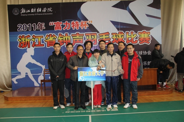 浙农林大新闻网讯 12月10日, 2011年“富力特杯”浙江省高校钟声羽毛球比赛在浙江财经学院举行,全省共有18所高校教工代表队参赛。副校长王自勇作为Beat365代表队成员参加比赛,校党委委员、校工会主席汪士华兼任Beat365教工羽毛球队领队。