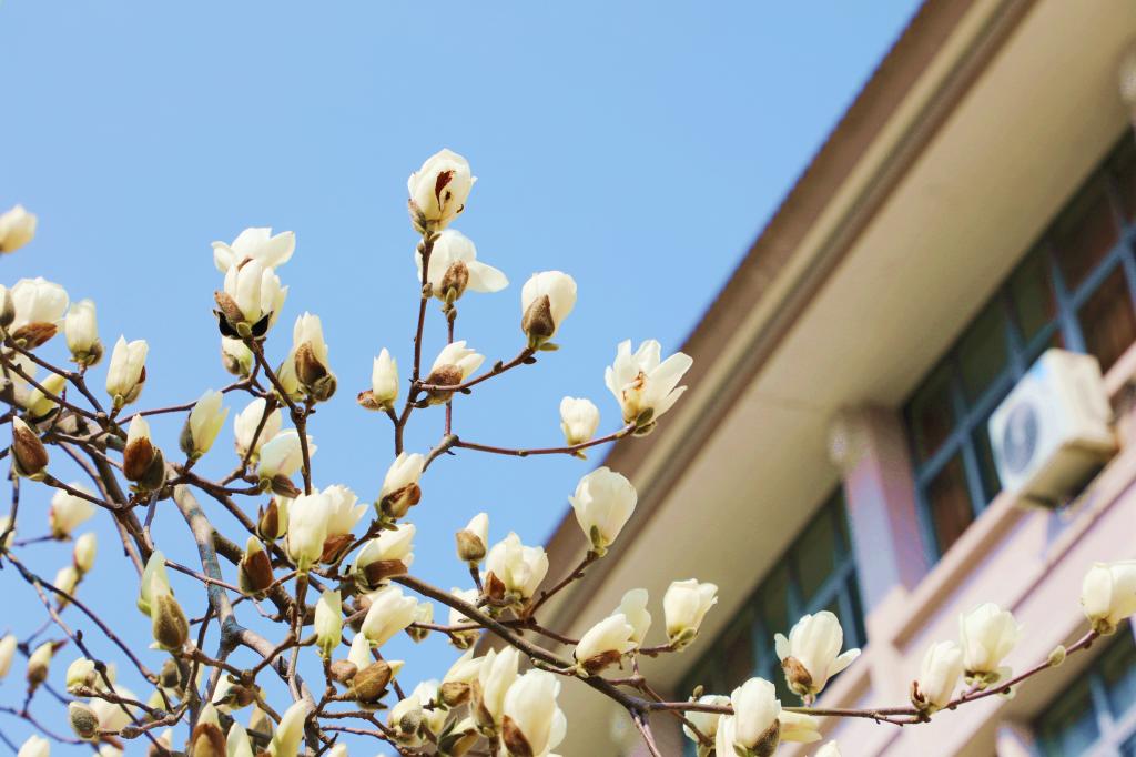 迎风生长的玉兰,含苞待放,点缀枝头;