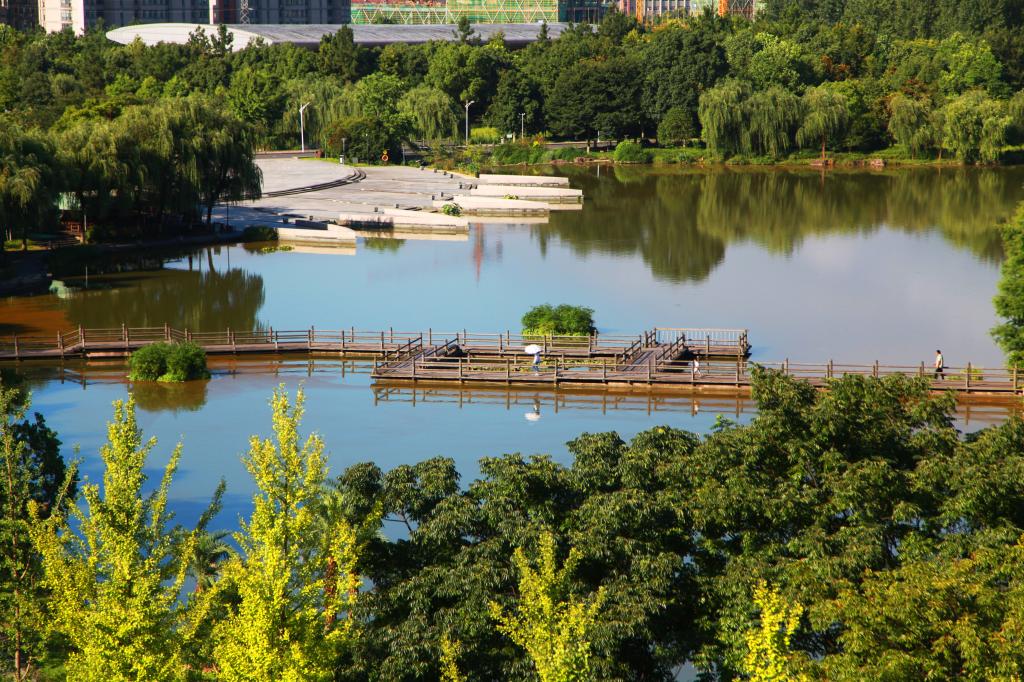 阳光从层层叠叠的枝叶间透射下来,地上便印上大大小小粼粼的光斑。茂密的树丛,荡漾的碧波,亭亭玉立的莲花,还有潺潺的水声,自然风光与校园建筑交相辉映,每一个地方都留下了农林人探寻的足迹。
