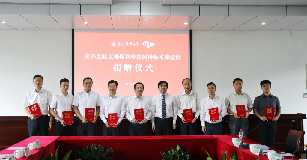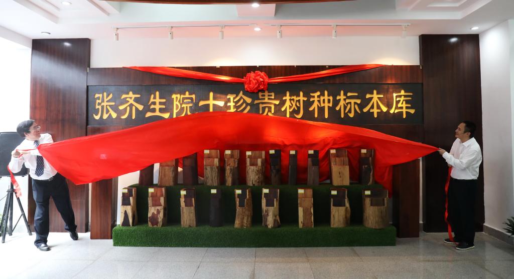 9月25日,“张齐生院士珍贵树种标本库”揭牌仪式在东湖校区举行。校党政班子成员、相关捐赠企业代表出席仪式。校长应义斌和捐赠企业代表瑞丽市岭瑞农业开发有限公司董事长杨洪斌共同为标本库揭牌。仪式由副校长沈希主持。