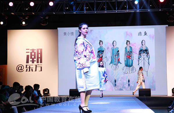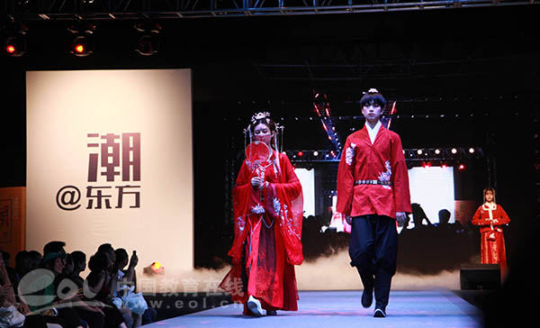 这次毕业秀主题为“潮@东方”,来源于“中国潮”力量在国际服装周的醒目亮相。本土品牌的转型,即是国人对中国元素的情怀,也是服装设计理念的蜕变。毕业生们在设计中运用汉服等传统形制,百家衣拼布等传统工艺、山海经怪兽图样等传统图案、布老虎等传统造型和中药染等传统染色,与时尚流行趋势相结合,挖掘传统服饰文化魅力,倡导民族文化自信,打造了一场精彩的“国潮秀”。