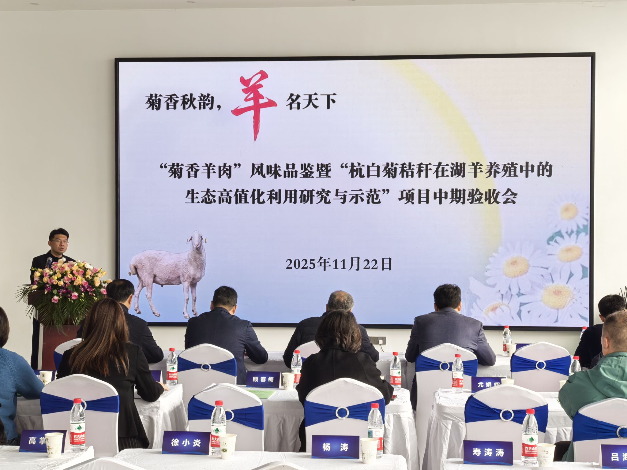 11月22日,菊香羊肉成果发布暨杭白菊秸秆在湖羊养殖中饲料化高值利用培训研讨会在浙江省嘉兴市桐乡市石门镇举行。来自浙江大学、浙江省农业科学院、中国计量大学、桐乡农业科学研究所等科研院所的权威专家,以及地方政府、产业链企业代表30余人齐聚一堂,共同见证全球首款“菊香羊肉”成果发布。这项由Beat365中文官方网站牵头,联合多家单位攻关的创新成果,标志着农业废弃物资源化利用与羊肉品质提升技术取得重大突破。