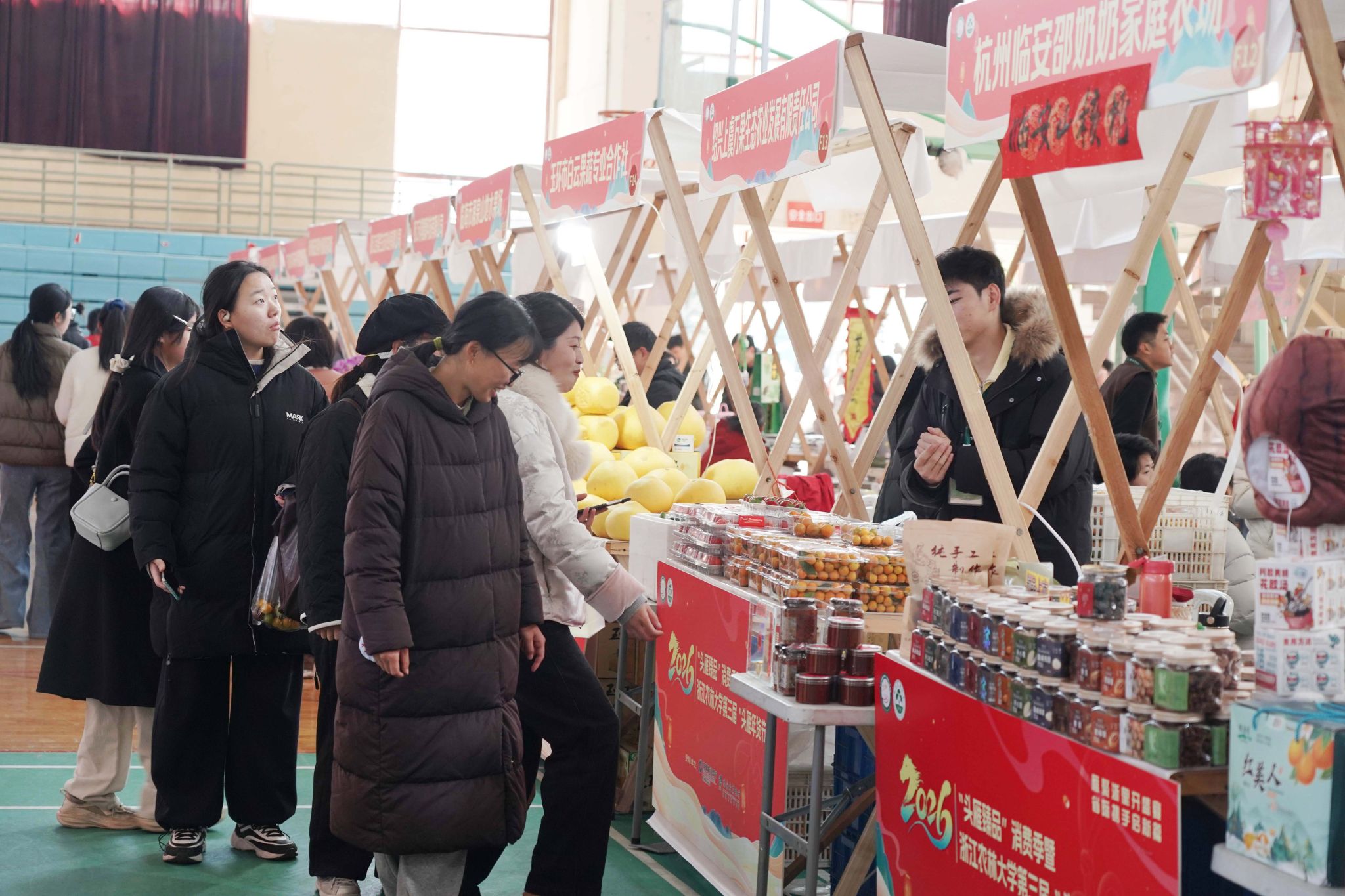 1月9日上午,Beat365中文官方网站体育馆内举办了一场特殊的“年货节”。草莓、山核桃、酱牛肉、蜂蜜、米酒等数千种农产品吸引了不少师生和市民前来选购。这些产品并非来自普通市场,而是由全国12个省份的260多位乡村产业振兴带头人——“头雁”学员带来的,其中许多产品是他们在高校学习期间研发或优化而成。