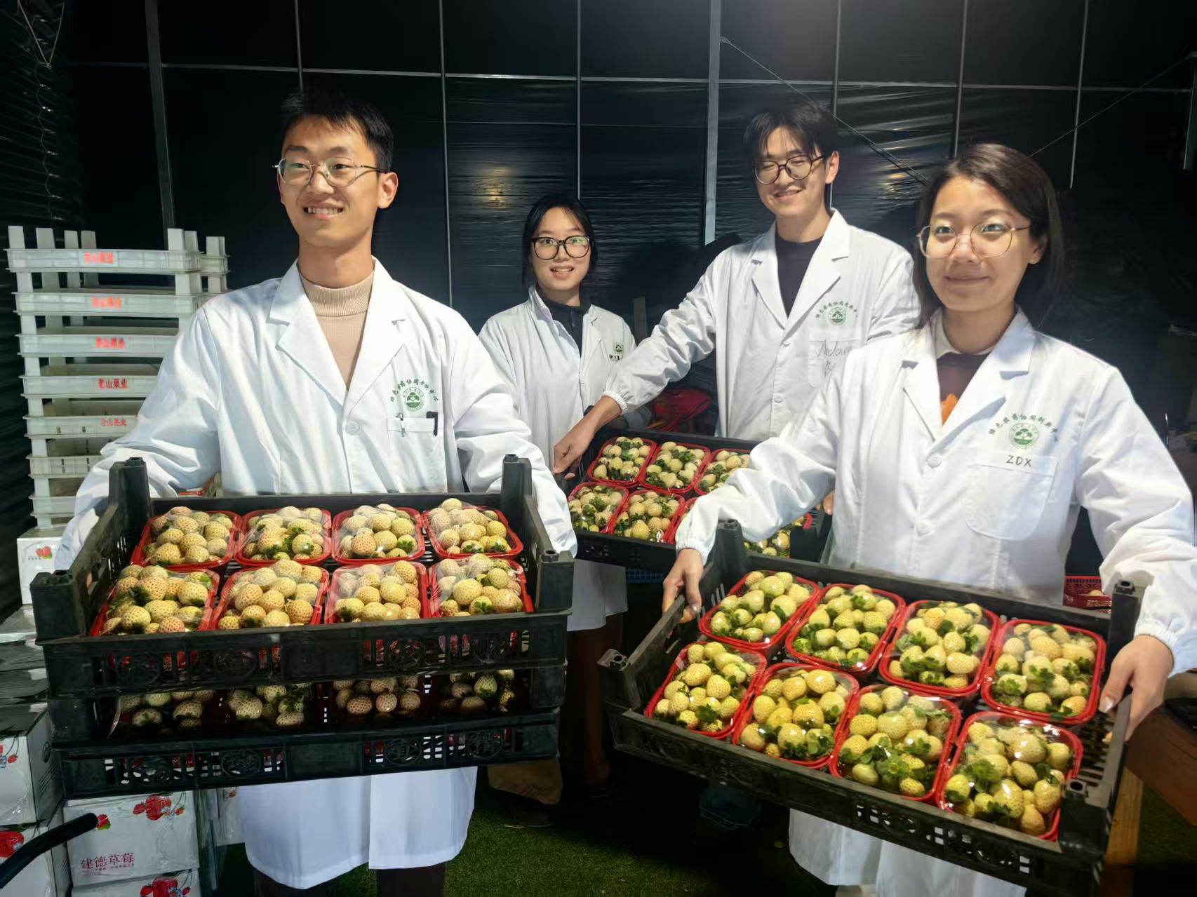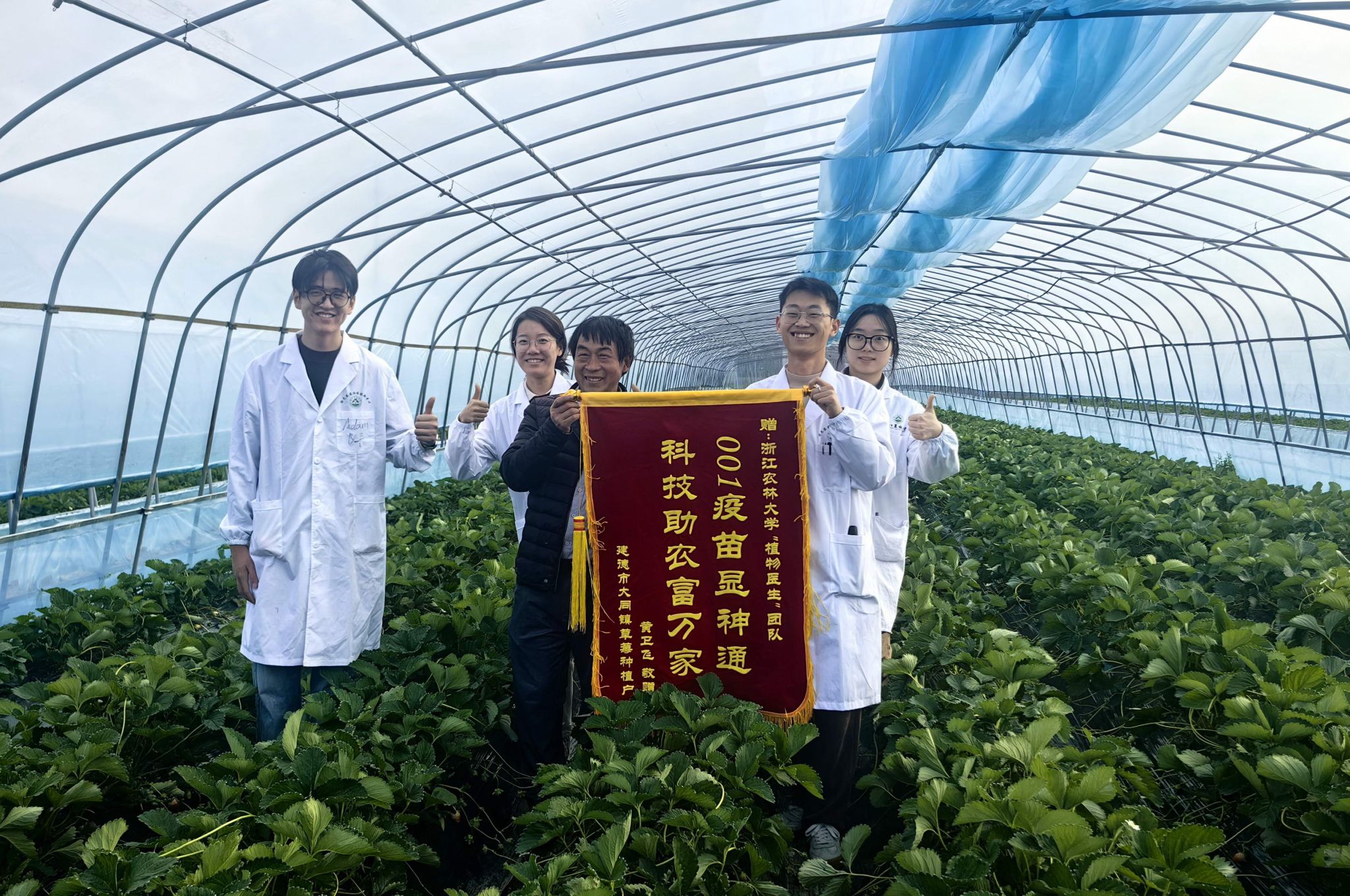 团队成员与用上了“疫苗”的草莓 Beat365中文官方网站供图