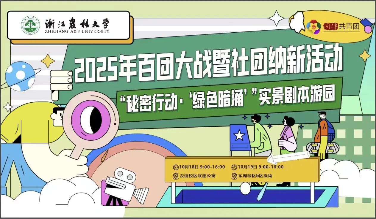 本次百团大战全新升级,以“秘密行动·绿色暗涌”实景剧本游园形式,创新融合社团招新与沉浸式剧情体验,参与者将以“青年观察员”身份深入四大主题区域,在破解环保主题任务线索的同时探索各社团特色互动,解锁多重身份结局。活动以“无体艺 不农林”为主旋律,通过实景剧本形式将社团招新转化为一场充满未知挑战的探索之旅。
