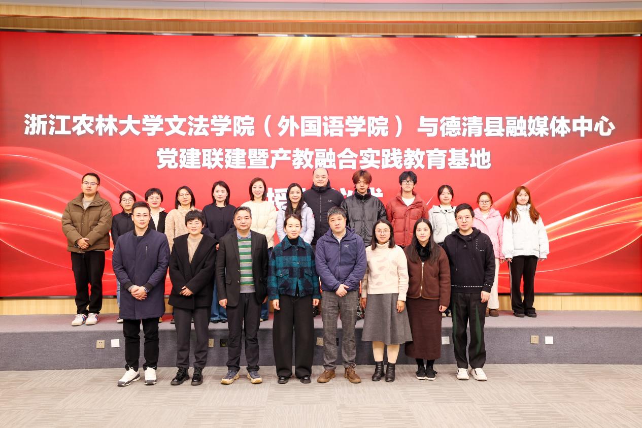 12月4日,文法学院与德清县融媒体中心党建联建暨产教融合实践教育基地授牌仪式在德清县融媒体中心举行。此次合作搭建起校地协同育人新平台,为新闻传播人才培养注入县域实践新动能,助力“新闻传播+”创新生态构建。