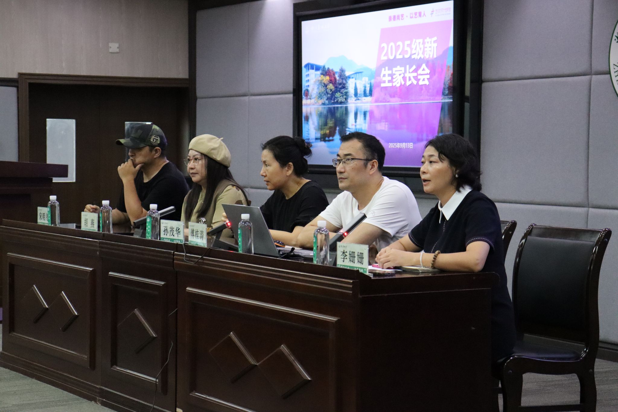 9月13日,艺术学院在图书馆第二报告厅召开2025级新生家长会。学院院长陈思宇、党委书记黄晓芳及党政班子成员、各学科专业负责人、新生辅导员与120余名新生家长代表共同参与会议。