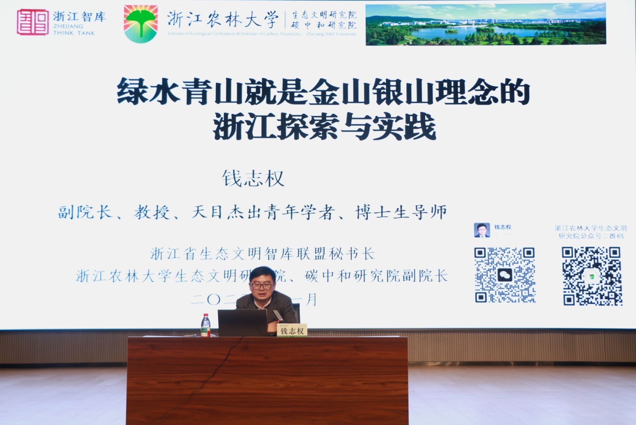 钱志权教授以“绿水青山就是金山银山理念的浙江探索与实践”为主题,将这一理念是如何提出、如何发展以及浙江对这一理念的实践探索和成果经验等方面内容以深入浅出的方式娓娓道来。还以 “青年参与生态文明建设的实践路径” 为核心展开分享,结合文法学院学科特点,阐释生态理念与青年责任的深度关联,为同学们提供理论指引与行动参考。