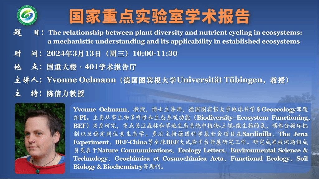 讲座预告:The relationship between plant diversity and nutrient cycling in ecosystems: a mechanistic understanding and its applicability in established ecosystems