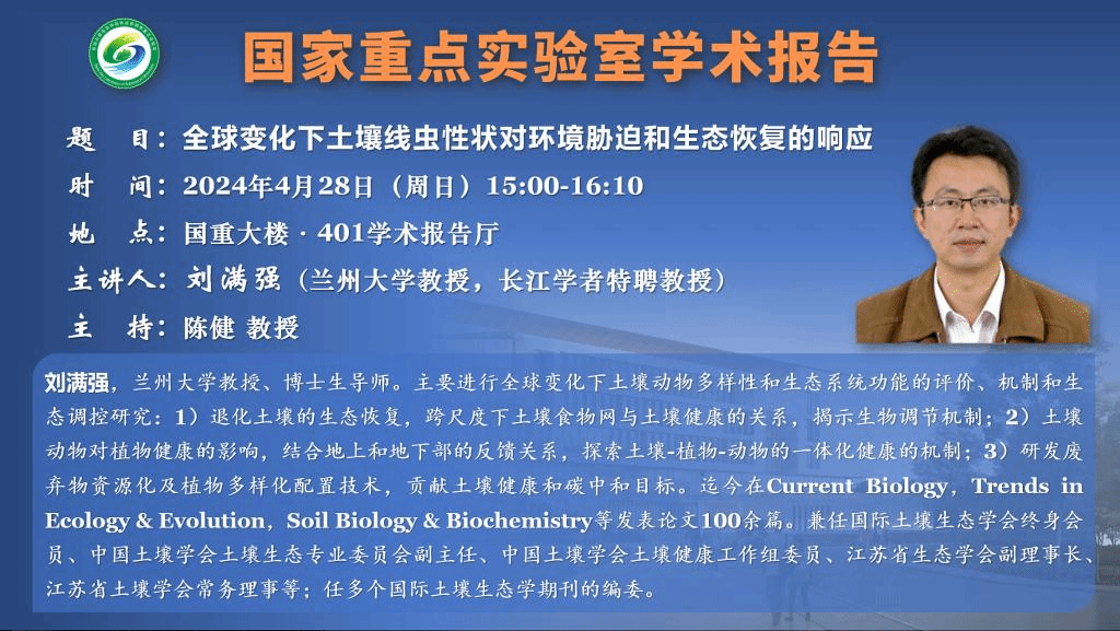 讲座预告:全球变化下土壤线虫性状对环境胁迫和生态恢复的响应