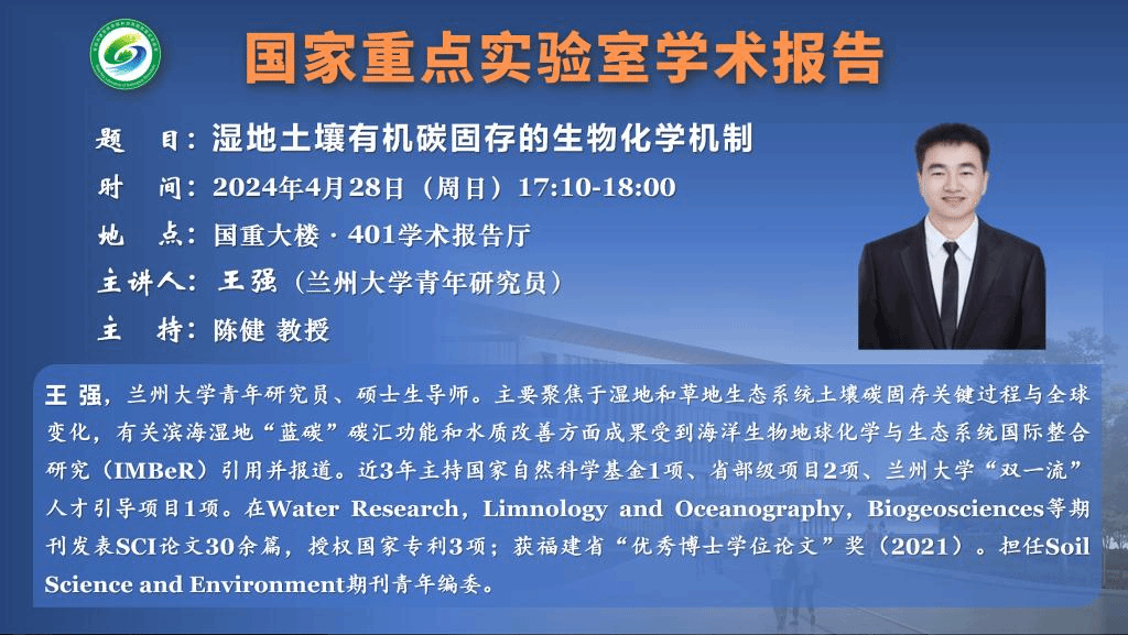 讲座预告:湿地土壤有机碳固存的生物化学机制