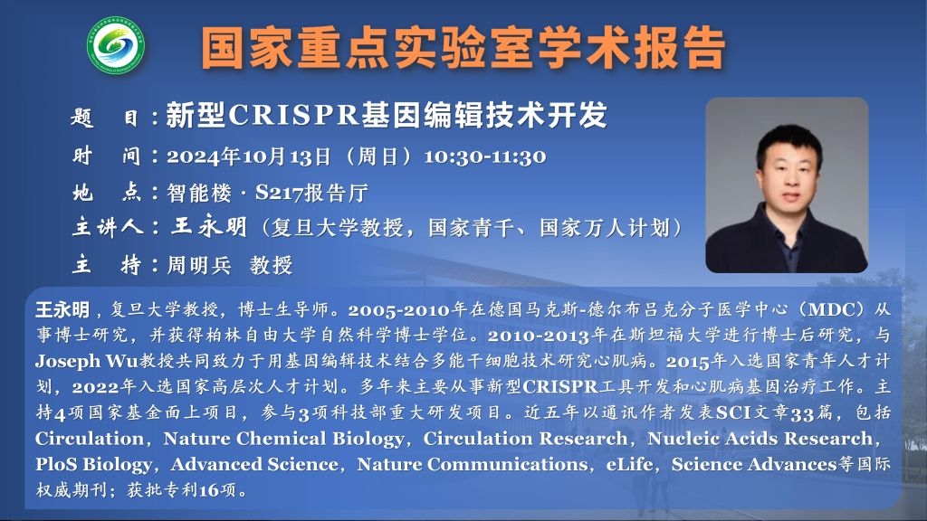 讲座预告:新型CRISPR基因编辑技术开发