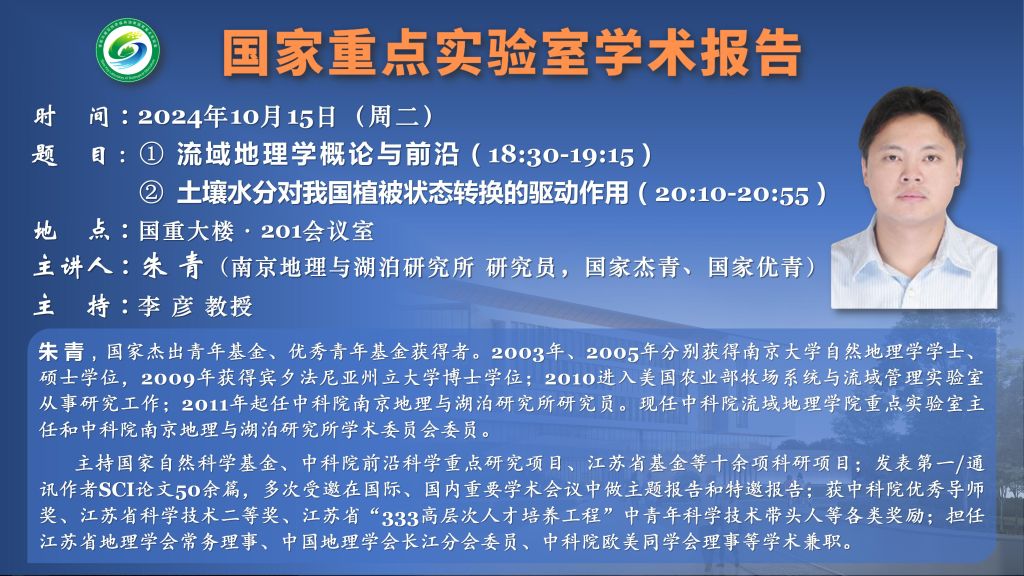 讲座预告:流域地理学概论与前沿&土壤水分对我国植被状态转换的驱动作用