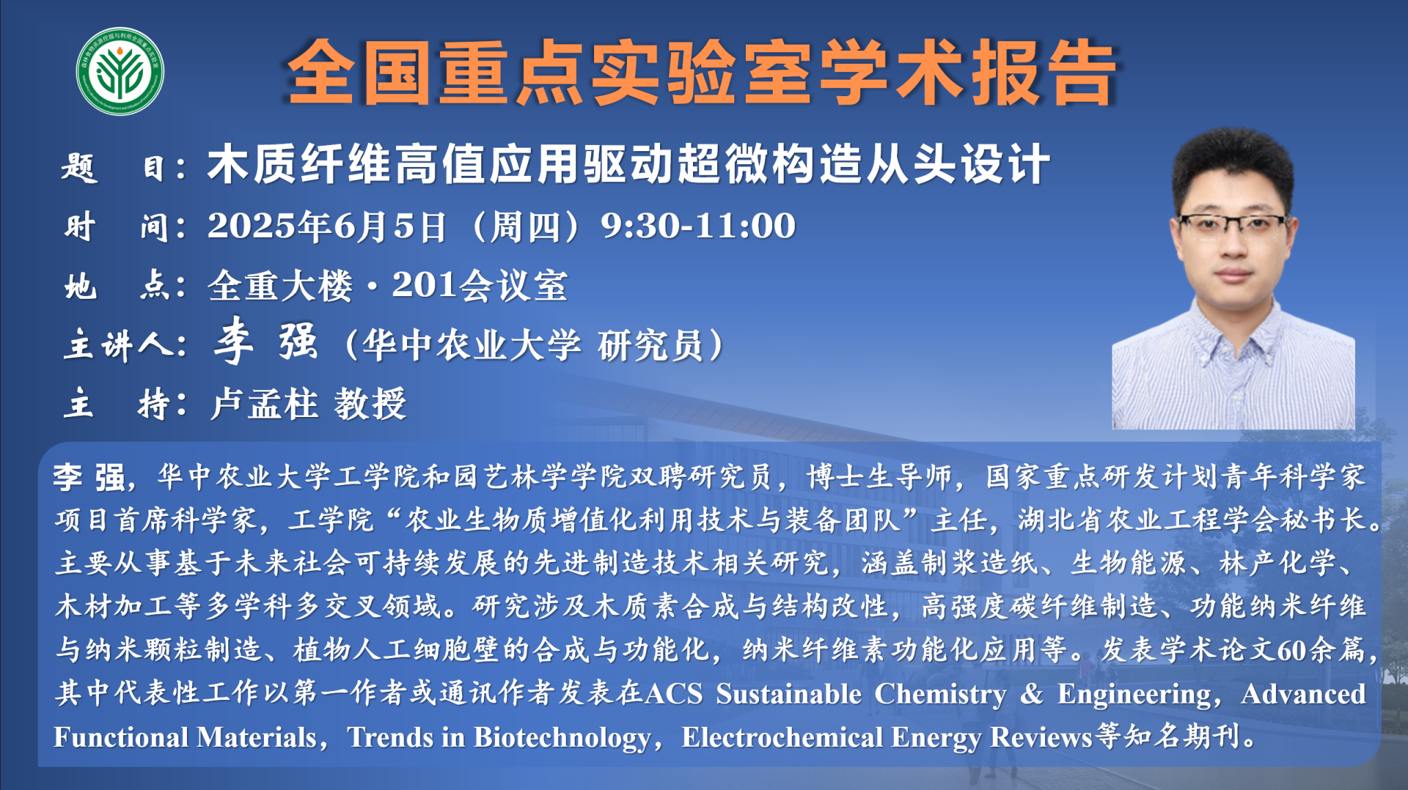 讲座预告:木质纤维高值应用驱动超微构造从头设计