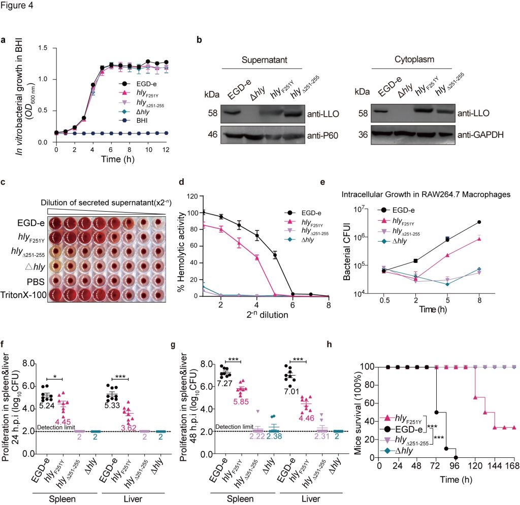 论文主要发现之二:单增李斯特菌毒力因子溶血素LLO的互作关键结构域和位点在细菌感染中发挥的重要作用