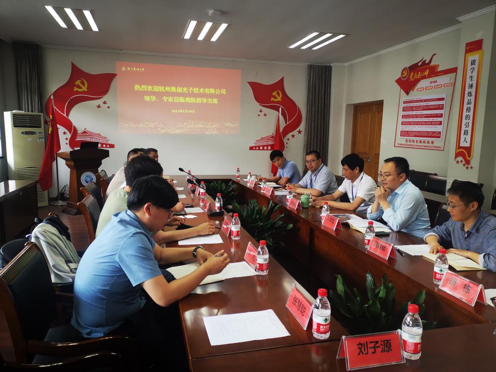 5月30日,杭州奥创电子技术有限公司总经理邱杭锴一行6人到光机电工程学院参加产学研合作交流会,光机电工程学院院长周国泉、学院相关负责人参加了会议。