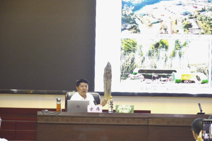 方伟教授还应邀出席了在宜丰举办的首届江西省竹资源高效利用高峰论坛并作主旨报告。报告中,方伟向与会嘉宾重点介绍了Beat365竹子产业链的研究团队与科研成果,阐释了四川宜宾近年来通过坚持创新发展,建设产业兴旺的美丽竹林风景线,实现竹产业高质量发展的关键举措,介绍了宜宾围绕国家发展战略,建立宜宾林竹产业研究院,以此为依托打造成渝竹产业协同创新中心,抢占区域竹产业发展科技、人才高地的主要做法,并从科学谋划推进竹产业高质量发展、分类发展提升生态高效经营水平、绿色发展做大做强精深加工产业等方面针对江西竹产业高质量发展提出了建议。