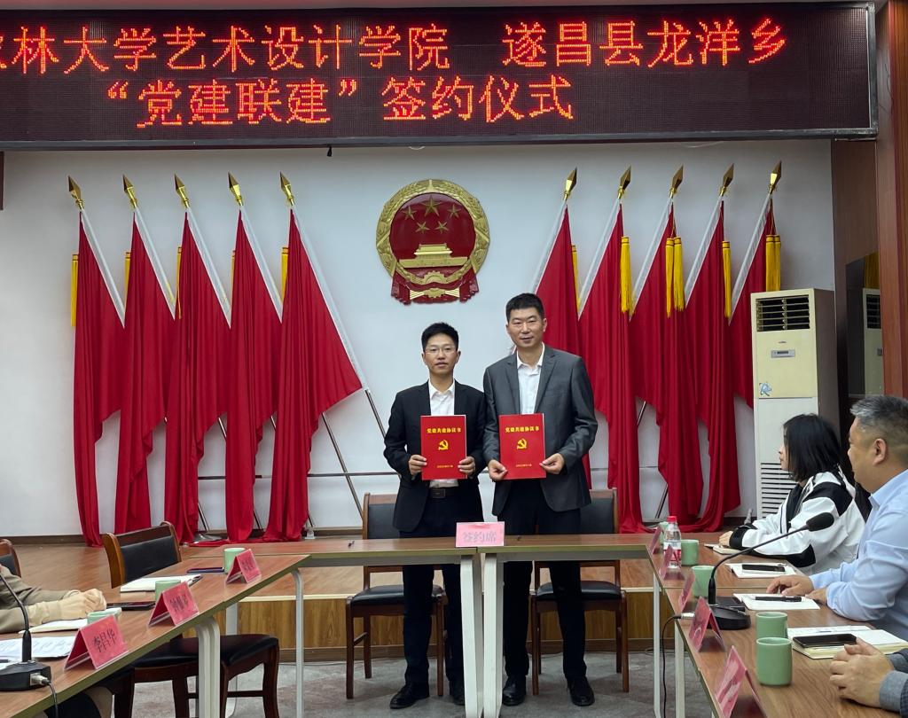 11月14日,艺术设计学院与遂昌县龙洋乡“党建联建”签约仪式在龙洋乡举行。遂昌县县委常委、纪委书记熊国权、龙洋乡党委书记李昌华、艺术设计学院院长王小德、党委书记陈思宇及各支部代表出席签约仪式。
