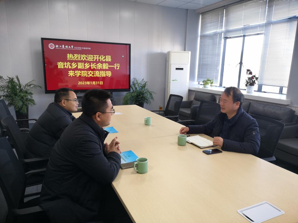 1月31日,开化县音坑乡领导莅临文法学院就院地合作事宜地行商谈,学院党委书记朱红东等学院领导参加会谈。