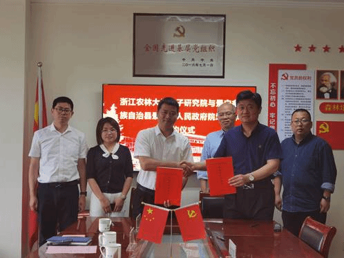 4月18日,竹子研究院与景宁畲族自治县景南乡人民政府合作协议签约仪式在智能实验楼小会议室举行。景南乡乡长林文勇一行及竹子研究院领导班子、教师代表参加签约仪式。