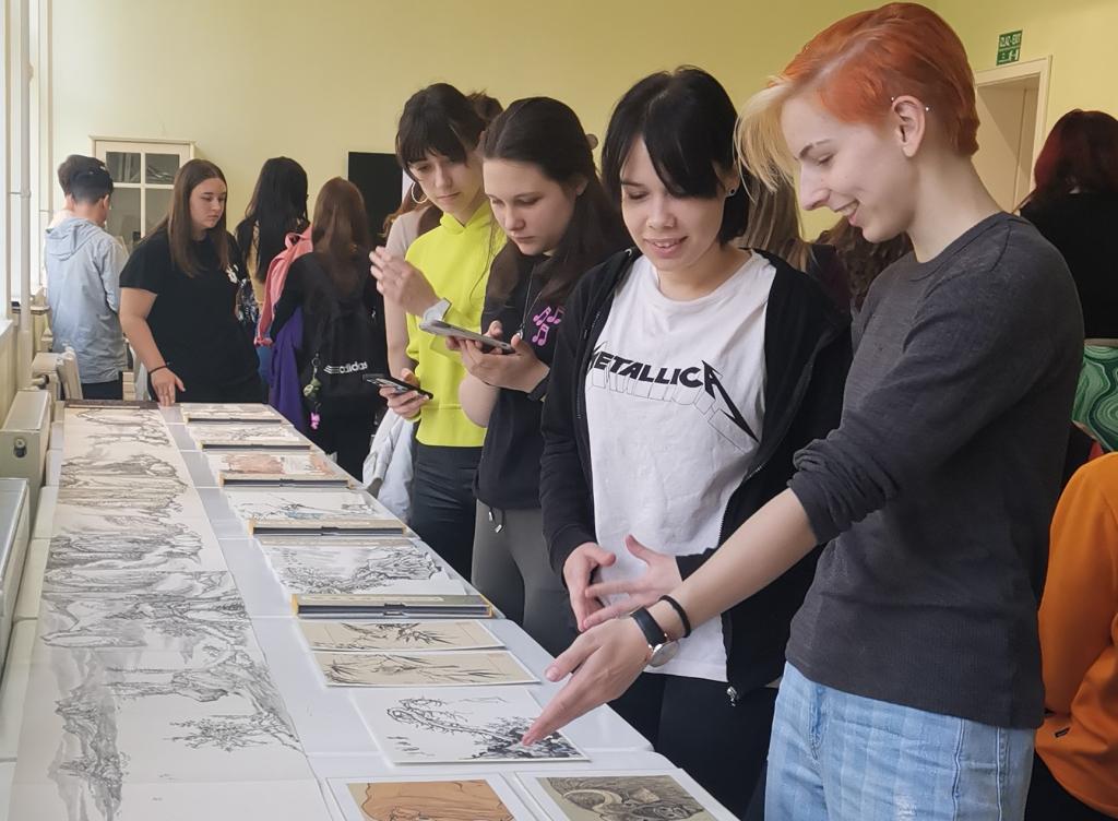 在沙巴茨语言高中,校长玛丽安娜·伊萨柯维奇(Marijana Isakovic)表示,十分感谢诺维萨德大学孔子学院组织的画展活动,让学生和老师们有机会了解中国传统艺术内涵。玛丽安娜·伊萨柯唯奇(Marijana Isakovic)校长也向两位画家赠送了塞尔维亚的书法作品。