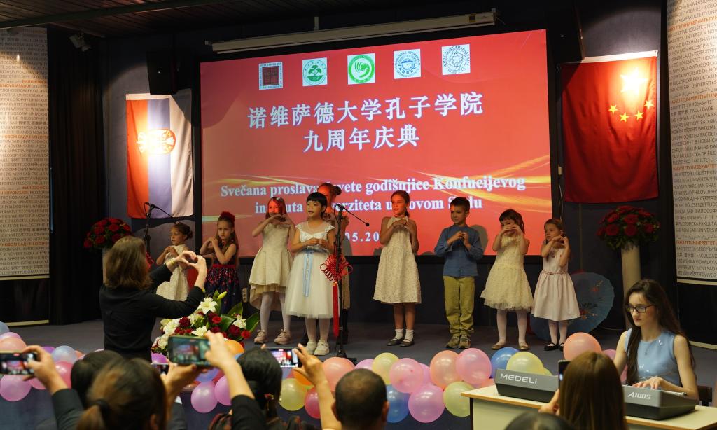 当地时间5月27日,诺维萨德大学孔子学院举办九周年庆典活动。来自塞尔维亚教育部、中国驻塞尔维亚大使馆、伏伊伏丁那省与诺维萨德大学的领导,以及塞尔维亚社会各界知名人士、孔子学院下属孔子课堂和各个教学点师生代表以及中国书画家等近200人齐聚一堂,各个合作教学点的师生们组织策划了中文歌曲合唱、《论语》朗诵、太极、茶艺等众多节目,共同庆祝诺大孔院建院九周年。