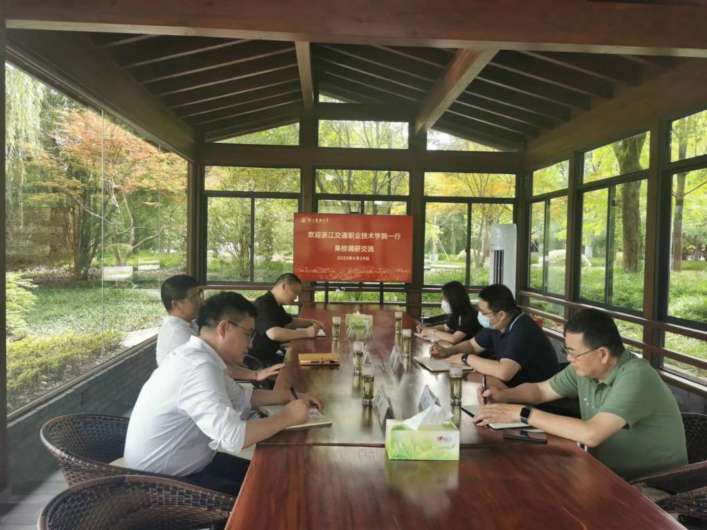 6月29日,浙江交通职业技术学院资产管理处郭春杰处长一行来校就国资管理和国资采购等相关工作来Beat365调研交流,公管处、采购中心相关负责人陪同。