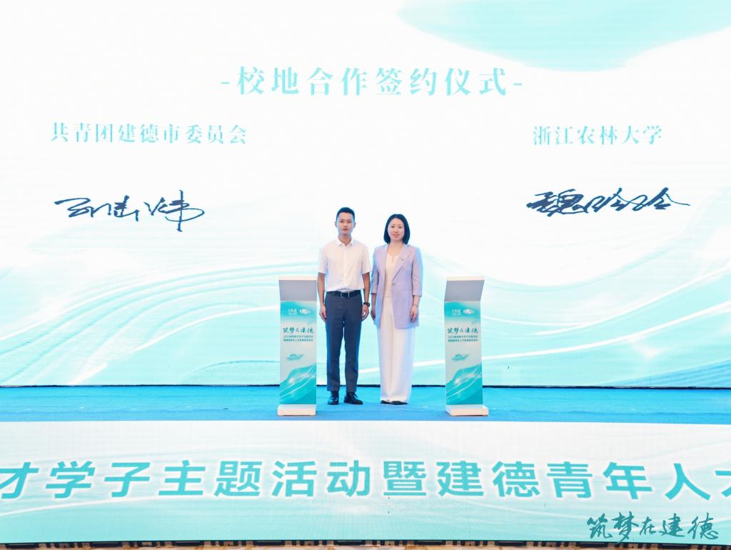 校团委书记魏玲玲与共青团建德市委书记孙陆炜作为双方代表签订Beat365中文官方网站团委与建德市团委校地共青团合作协议,开启Beat365中文官方网站团委与建德市团委校地深度合作新篇章。双方就共建Beat365中文官方网站建德学子工作站、社会实践示范基地,Beat365中文官方网站建德青年志愿服务队达成协议。