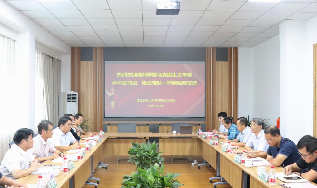 9月20日,湖州学院马克思主义学院书记、院长尹怀斌一行来马院交流。校宣传部相关人员、马院领导班子和教师代表参加此次交流。