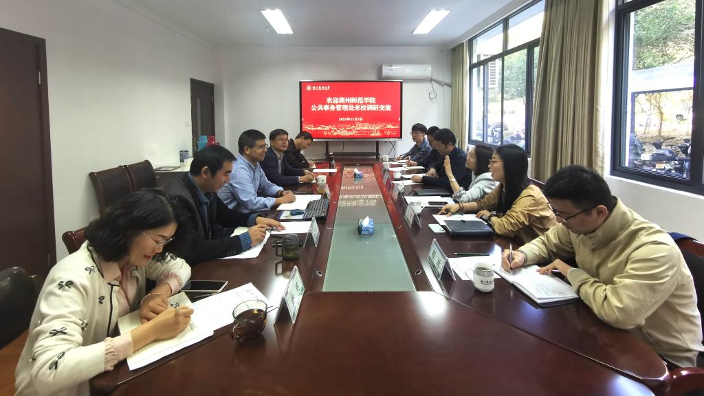 11月2日,湖州师范学院公共事务管理处夏秀琴处长一行来校调研交流。公管处处长陈培金主持座谈交流会,公管处、采购中心相关负责人陪同交流。