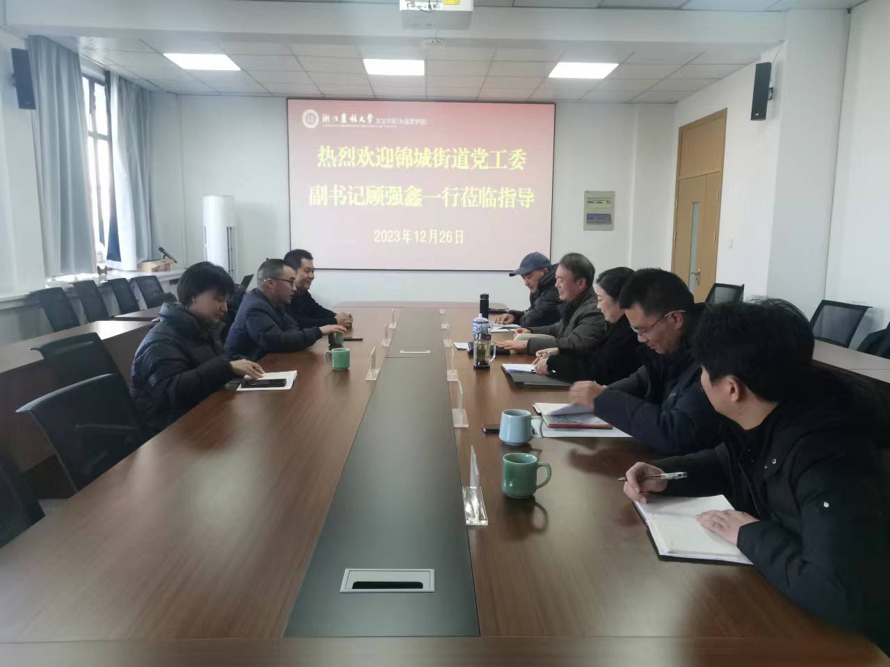 12月26日,临安区锦城街道党工委副书记顾强鑫一行到文法学院对接党建联建。文法学院党委书记朱红东等学院领导及有关教师代表参加交流。