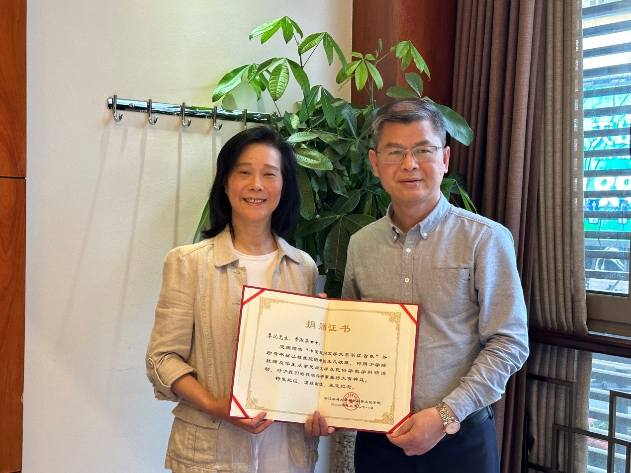 日前,原浙江省文联民间文艺家协会常务副主席兼秘书长、浙江省民间文学集成办公室主任季沉、原浙江省作家协会副主席费淑芬伉俪将一套完整的“中国民间文学集成大系浙江卷”等珍贵图书资料共计461本,其中包含浙江各县故事卷、谚语卷、歌谣卷,民间文学集成卷,民俗学丛书,杭报丛书以及部分人物传记、文集、小说等无偿捐赠给茶学院。