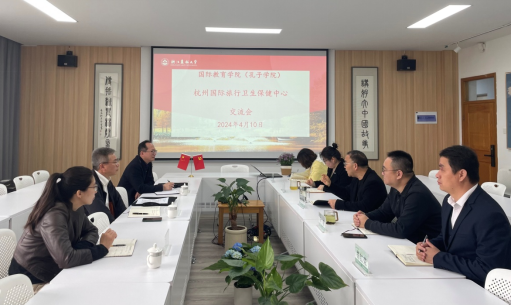 4月10日上午,杭州国际旅行卫生保健中心负责人陈明环一行四人来校交流国际生检疫工作。国教学院院长赵有华等相关领导以及相关工作人员参加座谈。