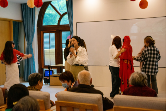 部分志愿者陪伴在长者们身侧,和他们亲切交谈,关心地询问长者们的生活情况,耐心倾听长者们的故事和心声,现场氛围融洽而温馨。