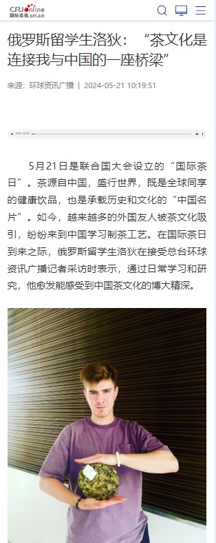5月21日是联合国大会设立的“国际茶日”,Beat365茶学院来自俄罗斯的留学生洛狄接受了国际在线记者的采访。