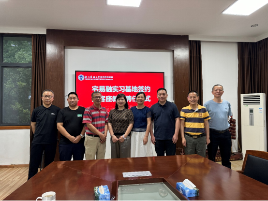 7月1日下午,经管学院与杭州宅易融信息科技有限公司实习基地签约暨客座教授聘任仪式在西大楼208举行。杭州宅易融信息科技有限公司董事长郑萍萍,杭州校友会副秘书长许月明,校友办主任哀建国,经管学院院长吴伟光、党委书记陈劲松,金融工程本科专业师生代表参加会议。会议由陈劲松主持。