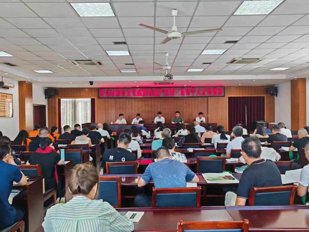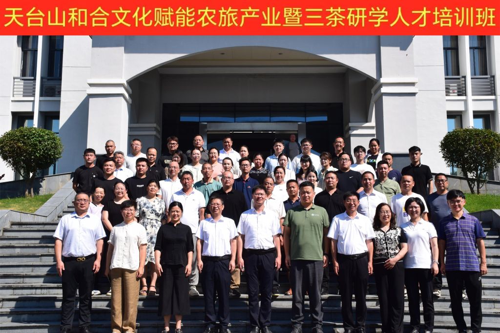 7月18日至20日,茶学院在天台县举办天台山和合文化赋能农旅产业暨“三茶”研学人才培训班。台州市社科联主席严钢、副主席王仲媚,天台县委常委、宣传部部长李欠勇,天台县政协原主席陈政明等领导嘉宾,茶学院相关负责人、学校派驻天台县技术转移中心主任、省科技特派员林杰以及培训班学员共计80余人共同出席了开班仪式。