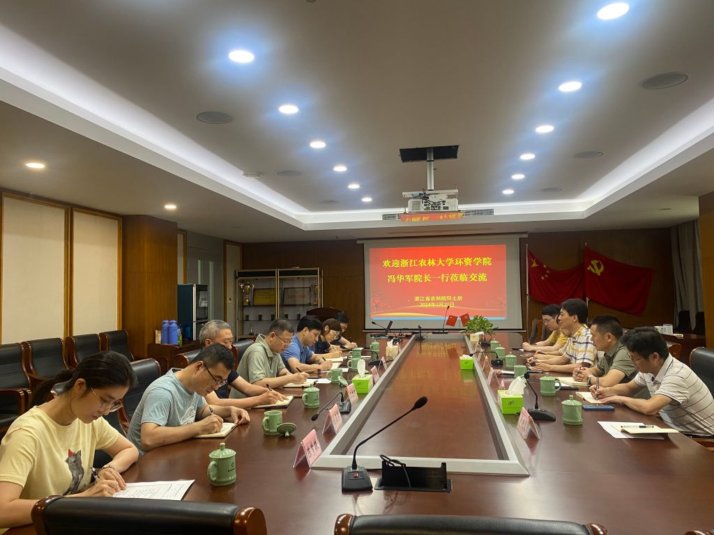 7月20日,环资院、碳中和学院领导班子成员一行6人赴浙江省农业科学院环境资源与土壤肥料研究所,就党建联盟共建、科研深度合作、研究生联合培养等方面进行了座谈交流。浙江省农业科学院环境资源与土壤肥料研究所所长马军伟、党委书记刘宁、副所长郭彬等参加交流。