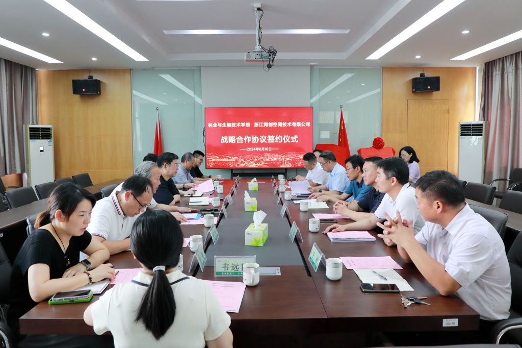 8月16日,林生院与浙江同创空间技术有限公司签署战略合作协议。林生院班子成员、校友办主任哀建国、同创公司董事长陈小华、总经理陈伟华以及相关技术负责人出席签约仪式并座谈。