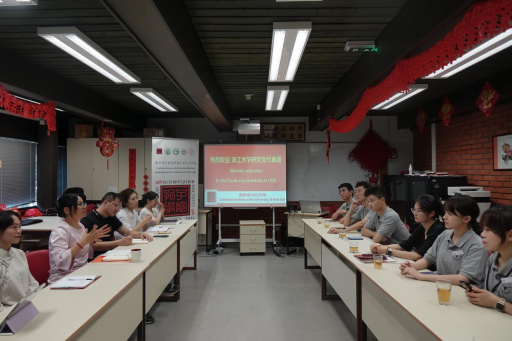 当地时间8月29日,浙江大学研究生代表团访问诺维萨德大学孔子学院。诺大孔院中方院长陈秀及孔院教师参加座谈交流。
