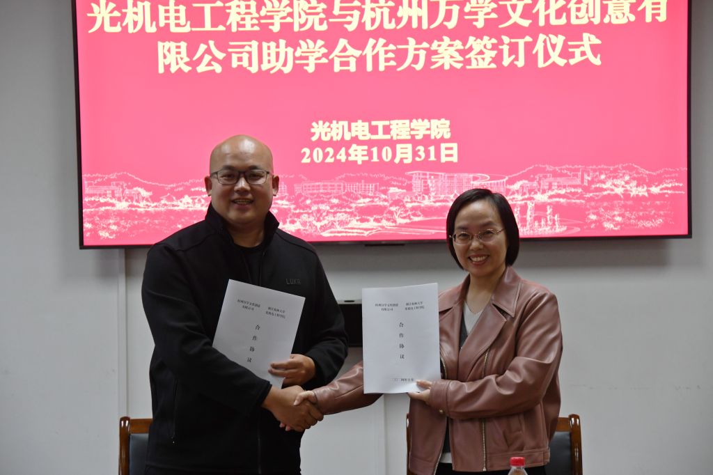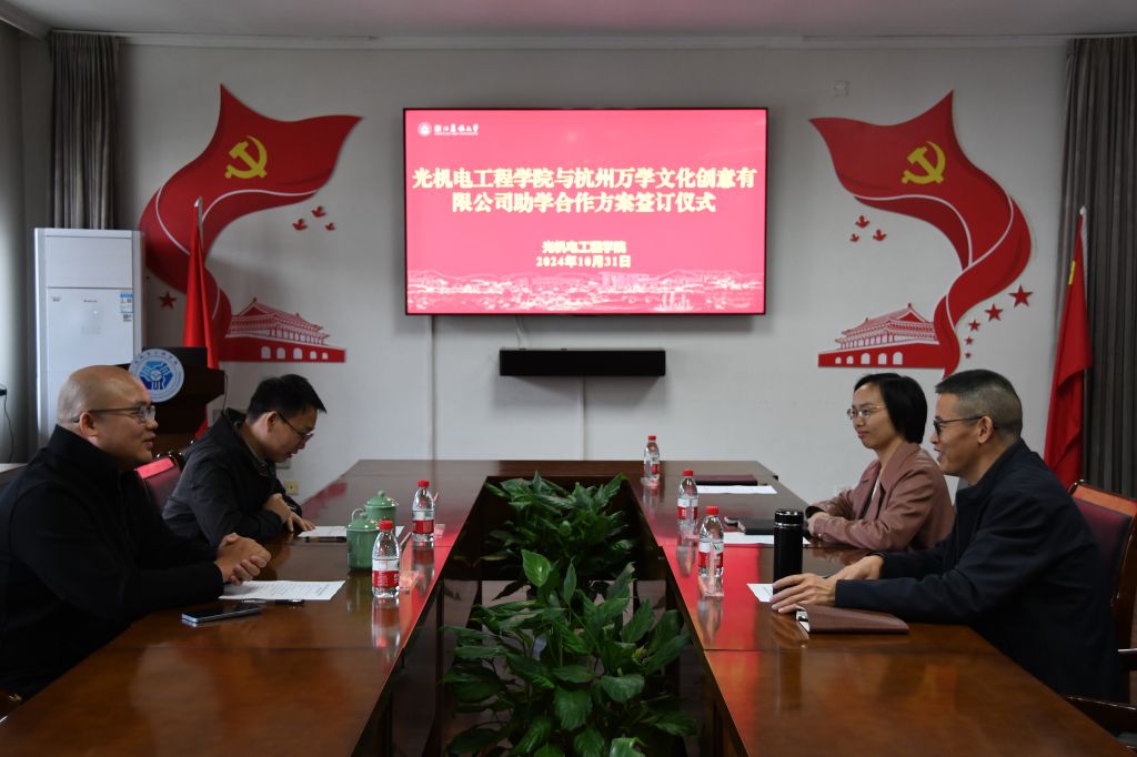 10月31日下午,光机电学院与杭州万学文化创意有限公司举行助学合作方案签订仪式。光机电学院党委书记何利平及学院相关负责人、代表出席,万学教育海文考研华东大区副总、浙江分公司总经理陆松以及临安地区负责人带队参加。