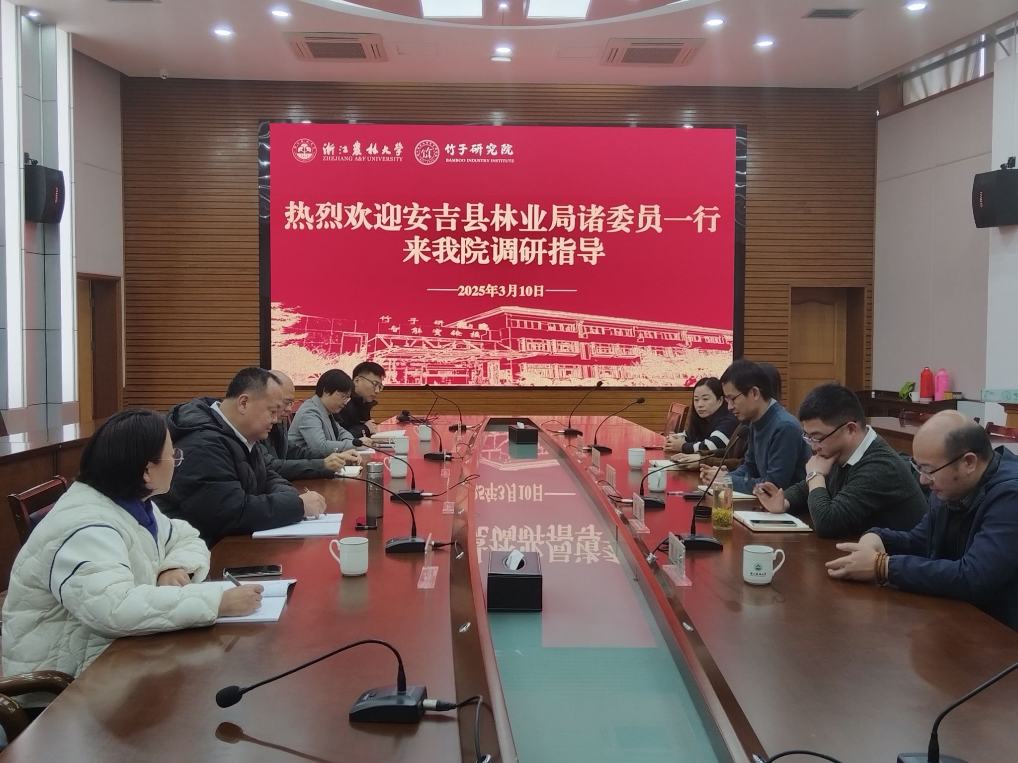 3月10日下午,安吉县林业局党委委员诸炜荣一行来到竹子研究院交流合作。竹子研究院相关负责人及各创新团队教师参加。